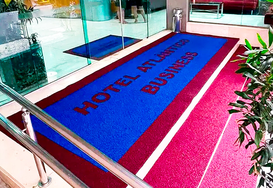 Tapete nylon com impressão nítida e acabamento premium para valorizar a entrada da sua empresa.