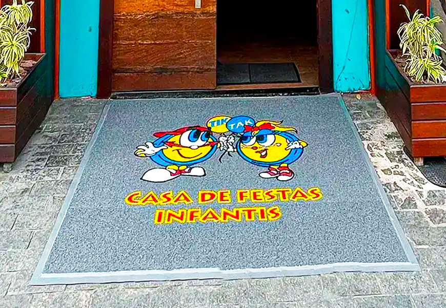 Tapete vinil personalizado de alta resistência, ideal para alto fluxo com a qualidade da Capachos Forte.